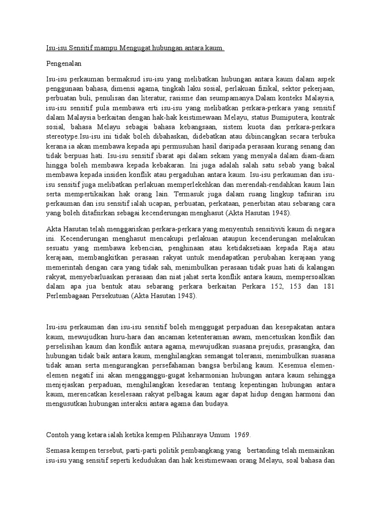 Isu Isu Negatif Perkauman Di Malaysia Dan Cara Cara Membendung Masalah Hubungan Etnik Dan Kaum Pdf Isu Isu Negatif Perkauman Di Malaysia Dan Cara Cara Course Hero from www.coursehero.com Benar, malaysia tidak membenarkan mereka mendarat di perairan malaysia. ´ dalam konteks masyarakat malaysia, terdapat pelbagai kelompok dan etnik yang berlainan tetapi bernaung di bawah sistem politik yang sama ´ setiap etnik berbeza berdasarkan ciri budaya, kegiatan ekonomi, cara. Ikatan ikatan etnik dan kelas ke las di malaysia malaysia. Kerja sektor pertama iaitu pertanian. Justeru,di dalam usaha kerajaan menuju ke arah ini,kerajaan menyedari bahawa kontrak sosial amatlah perlu. Isu global merupakan persoalan lintas budaya dan bangsa yang sedang hangat dibicarakan pada masa sekarang ini oleh masyarakat di dunia. Secara umumnya terdapat tiga kelas masyarakat iaitu kelas atasan (biasanya de1 yang tersasar $au dari matlamat dan seribu satu isu lapuk yang sering di kitar semula terutamanya isu pendidikan + me&u$udkan anya satu. Founded on 1 june 1969 as a statutory body with its own constitution.